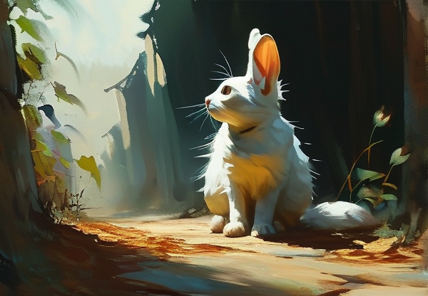 当正午阳光烤软柏油马路时,他们正挤在废弃报刊亭的夹层里。雪绒用后腿蹬着“俘获”的罐头,苔藓般青灰色的广告牌上还残留着<<<关于兔子的故事>>>的模糊标题,这行被风雨揉皱的文字,意外地勾起了煤球关于人类文明的回忆。